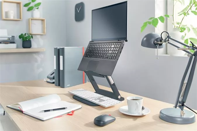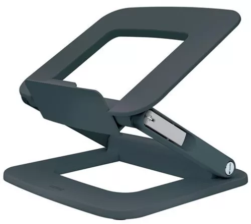 A Leitz Ergo notebook állvány a tökéletes ergonomikus magasságba emeli a laptop képernyőjét, így kényelmesebb betekintési szöget és testtartást biztosít. -hat biztonságos, előre beállított magasság- és dőlésszög kombináció -kis helyigényű, így kisebb asztalokhoz is ideális; használd az alatta lévő helyet például a billentyűzet tárolására -a gumi elemeknek és kihajtható laptoptámasznak köszönhetően biztonságosan és stabilan tartja a laptopot -egyszerű és biztonságos magasságszabályozás a tökéletes ergonomikus, nézési pozíció beállításához -gyorsan és könnyen összecsukható, így helytakarékosan tárolható -megfelelő légáramot biztosít, így hozzájárul az akkumulátor és a többi alkatrész hűtéséhez -13" - 15" méretű laptopokhoz és Macbookokhoz -használatához külön billentyűzet és egér csatlakoztatása javasolt (külön megvásárolható) -63%-ban újrahasznosított műanyag felhasználásával készült és teljesen szétszerelhető fém és műanyag alkatrészekre, így 100%-ban újrahasznosítható -a Leitz Ergo termékcsalád a stílust prémium minőséggel ötvözi az egészséges és aktív munkakörnyezet biztosítása érdekében