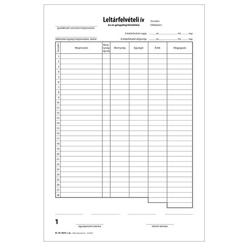 Leltárfelvételi ív áru és göngyöleg felvételére 50x3 lapos tömb A/4 álló