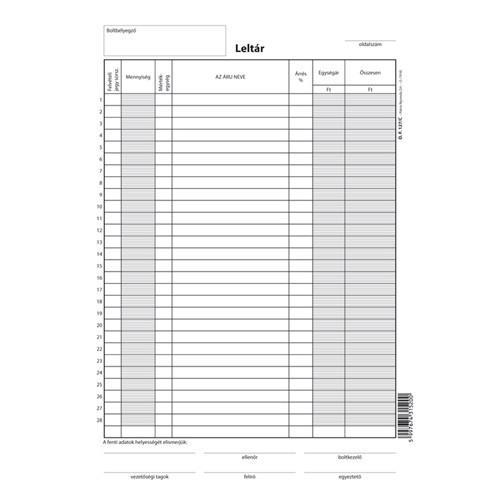 Leltárfelvételi ív szabadlap A/4 álló