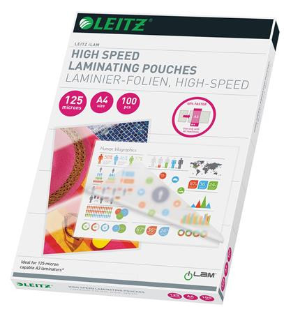 Meleglamináló fólia, 125 mikron, A4, fényes, LEITZ "iLam"