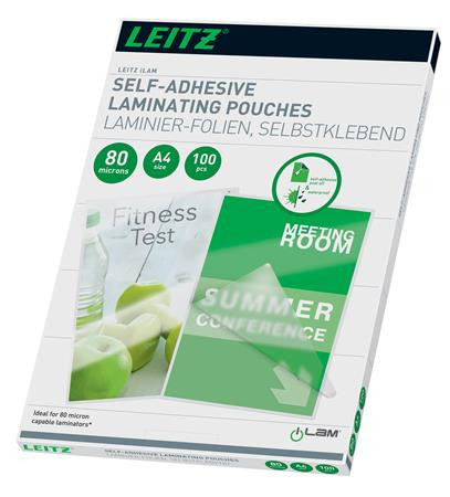 Meleglamináló fólia, 80 mikron, A4, fényes, öntapadó, LEITZ