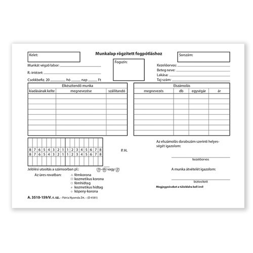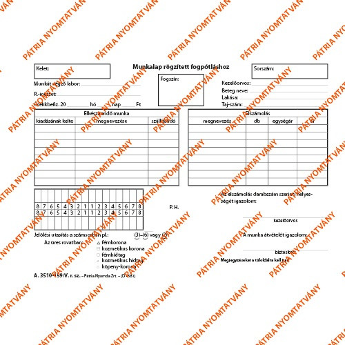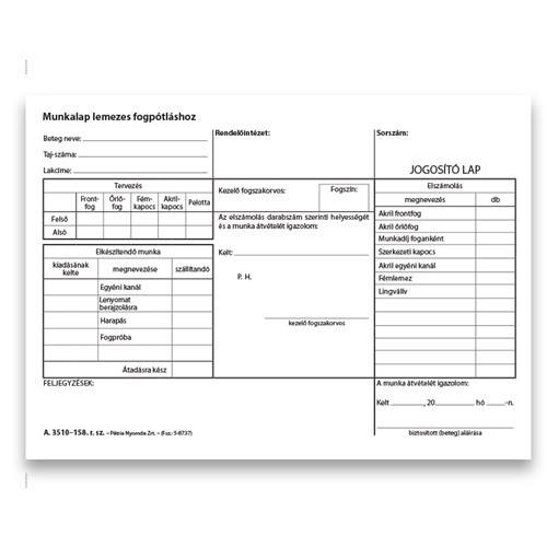 Munkalap rögzített fogpótláshoz 50x2 lapos tömb A/5 fekvő