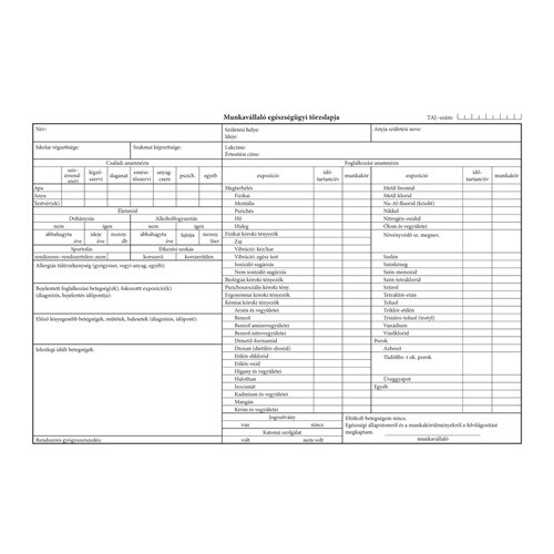 Munkavállaló egészségügyi törzslapja szabadlap 290x195 mm