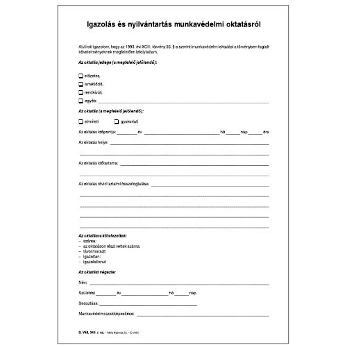 • Irodaszer, Nyomtatvány, Munkavédelem