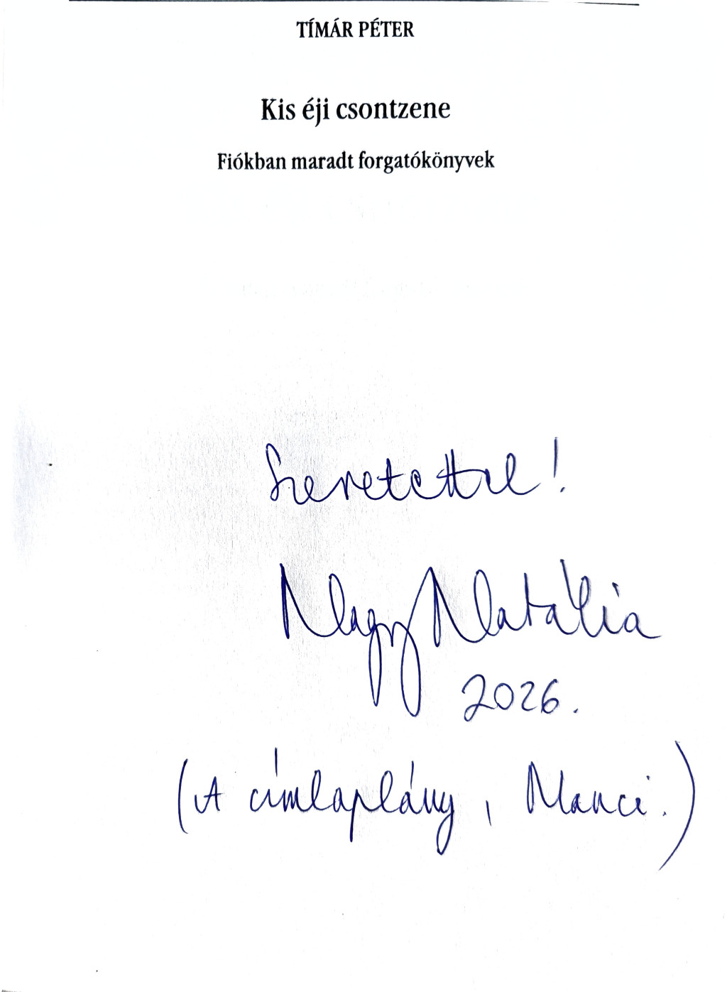 Nagy Natália által DEDIKÁLT - Kis éji csontzene! - Fiókban maradt forgatókönyvek (Tímár Péter)