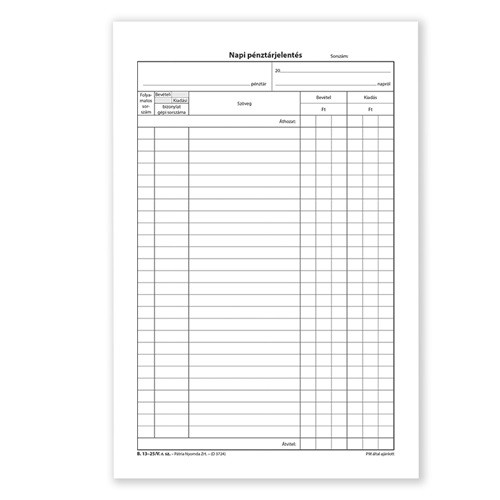 Napi pénztárjelentés 25x2+2 lapos tömb A/4 álló