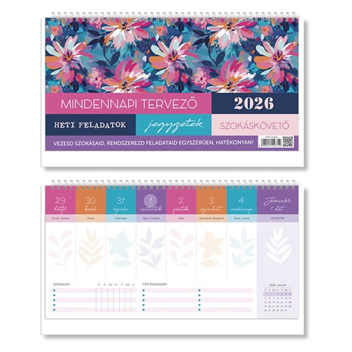 A pd Mindennapi tervező 2026 asztali naptár a fókuszált, mégis kreatív szervezés eszköze. Heti elrendezése azonnali áttekintést ad, a dedikált feladat- és szokáskövető mezők pedig támogatják a csapatok és egyéni felhasználók következetes munkaritmusát. A 4+4 színes nyomás és a tartós, spirálozott kartontalp egész évben igényes, stabil használatot biztosít.