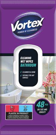 Nedves törlőkendő, fürdőszobai, 48 db, VORTEX