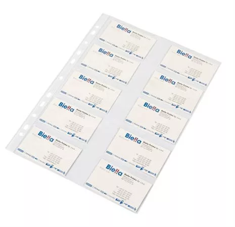 Névjegykártyát tárolására alkalmas lefűzhető genotherm -ívenként 20 darab, 95x60 mm-es névjegykártya tárolására alkalmas (a zsebek oldalról nyílnak) _x005F -víztiszta felület -50 mikron vastagság -11 lefűzőlyuk -valamennyi A4-es gyűrűs könyveben és emelőkaros iratrendezőben használható -mérete: 225x308 mm