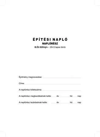 Nyomtatvány, építési napló, 25x3 + 9x3 betétlap, A4, VICTORIA PAPER "B.ÉTI.820", 10 tömb/csomag