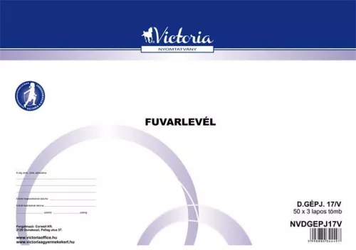 Nyomtatvány, fuvarlevél, 50x3, A4, fekvő, VICTORIA PAPER "D.GÉPJ.17", 10 tömb/csomag