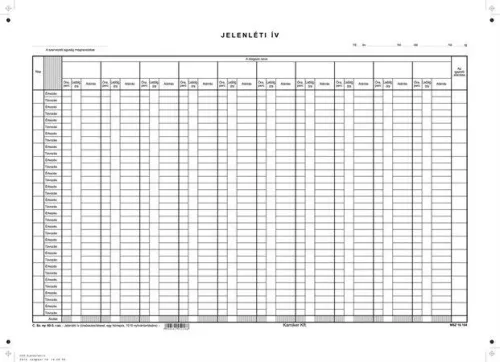 Nyomtatvány, jelenléti ív, 1 hónap-10 fő, A3, VICTORIA PAPER "C.60-3"