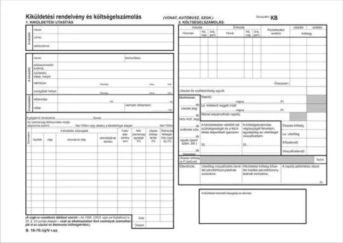 Nyomtatvány, kiküldetési utasítás és költségelszámolás, 25x2, A4, VICTORIA PAPER "B.18-70", 10 tömb/csomag