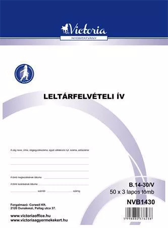 Nyomtatvány, leltárfelvételi ív, 50x3, A4, VICTORIA PAPER, "B.14-30", 10 tömb/csomag