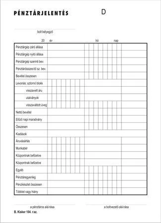 Nyomtatvány, pénztárjelentés, 25x2, A5, VICTORIA PAPER "B.Kisker-104", 10 tömb/csomag