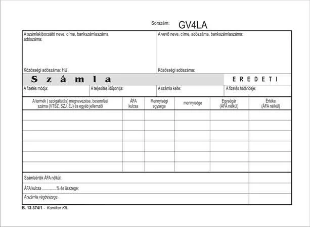 Nyomtatvány, számlatömb, egy ÁFÁs, 50x3, A5, fekvő, VICTORIA PAPER, "B.13-374", 10 tömb/csomag