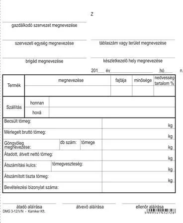 Nyomtatvány, termékkísérő jegyzék, 25x4, VICTORIA PAPER "DMG 3-12", 10 tömb/csomag