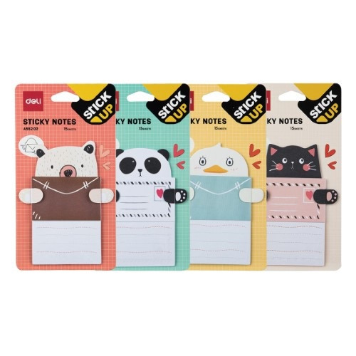 Öntapadós jegyzettömb DELI "Stick UP" 76x101 mm 15 lap vegyes állatos minta
