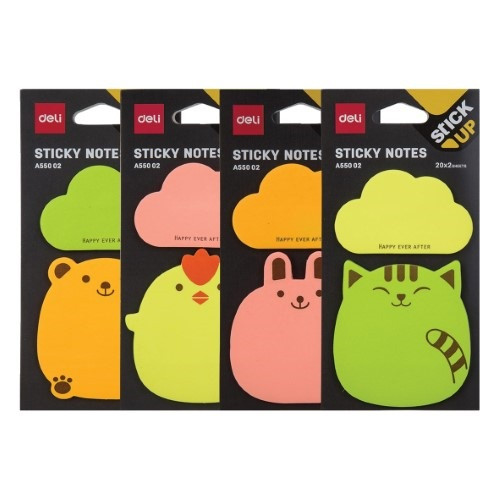 Öntapadós jegyzettömb DELI "Stick UP"  76x76 mm 2x20 lap vegyes állatos-figurás minta