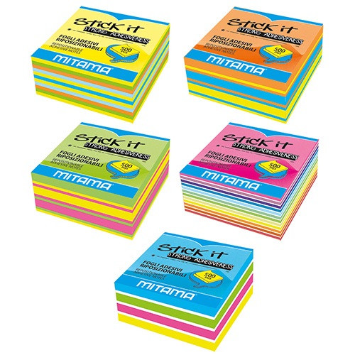 Öntapadós jegyzettömb Mitama 75x75 mm 500 lapos neon színek