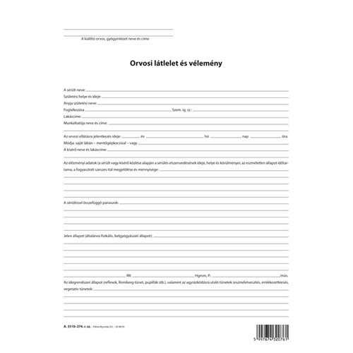 Orvosi látlelet és vélemény szabadlap A/4 négyoldalas