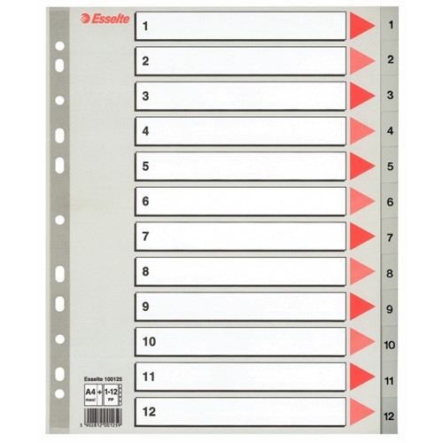 Regiszter PP Esselte A/4 1-12-ig szürke maxi 100125