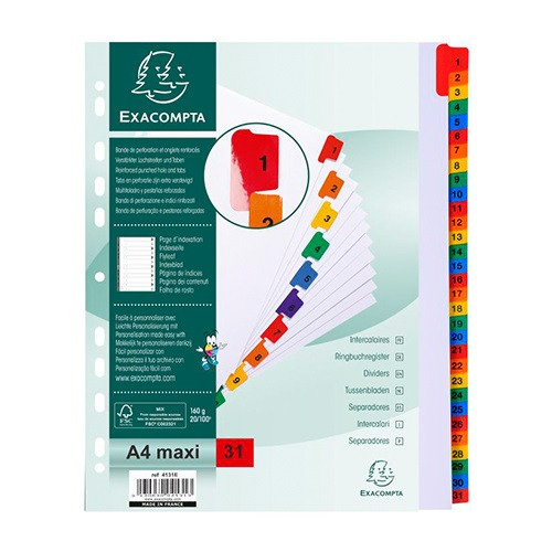 Regiszter karton Exacompta A/4 MAXI 1-31-ig laminált fülekkel