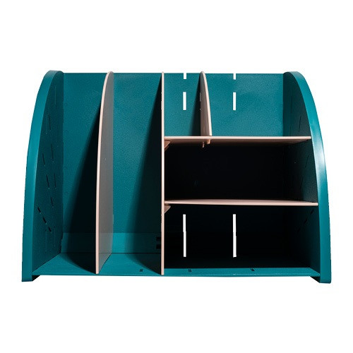 • Több különböző rekeszből áll, melyek különböző eszközök tárolására szolgálnak: öntapadós jegyzettömb, ragasztószalag, névjegykártyák, borítékok, tollak stb.