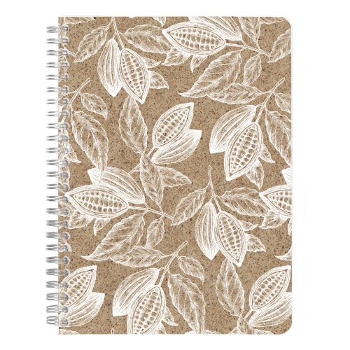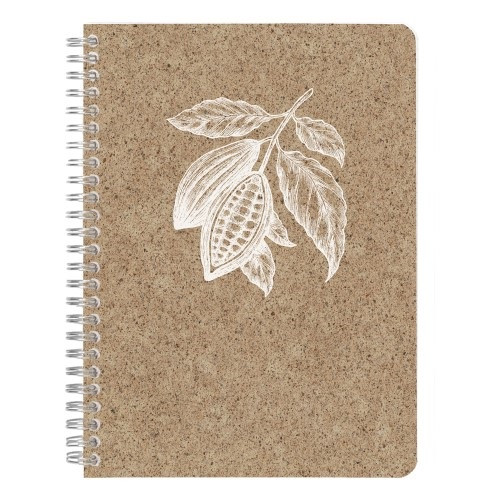 • Fehér szitanyomású, kakaóbabhéj anyagú fedőlappal készült spirálfüzet