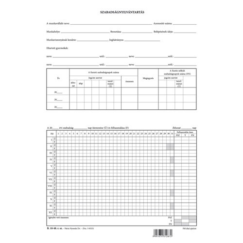 Szabadságnyilvántartás szabadlap A/4 álló