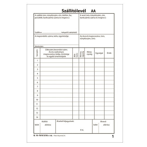 Szállítólevél 50x3 lapos tömb A/5 álló