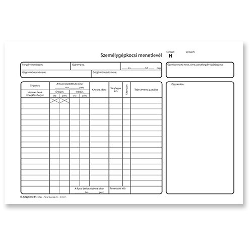 Személygépkocsi menetlevél 100 lapos tömb A/4 fekvő