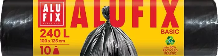 Szemeteszsák, 240 l, 10 db, 100x125 cm, 20 µ, ALUFIX "Economy", fekete