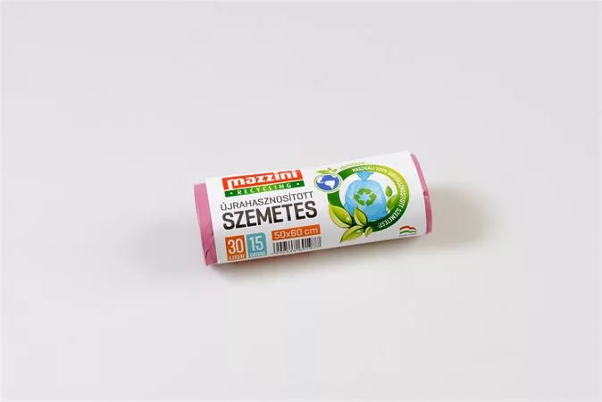 Szemeteszsák, újrahasznosított, 30 l, 15 db, 50x60 cm, 12 µ, MAZZINI, pink