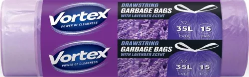 Szemeteszsák, zárószalagos, 35 l, 15 db, 50x60 cm, HDPE, 15 µ, VORTEX, levendula illattal