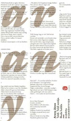 Arany János már huszonnyolc éves, amikor egyáltalán jelentkezik az irodalmi életben, és harmincegy esztendős korában érkezik el a Toldi nagyon is indokolt sikere. S a művészi fejlődés ettől fogva is szakadatlan, művészete mind gazdagabbá válik. A kötetben három műve található: Toldi, Toldi estéje, Buda halála.