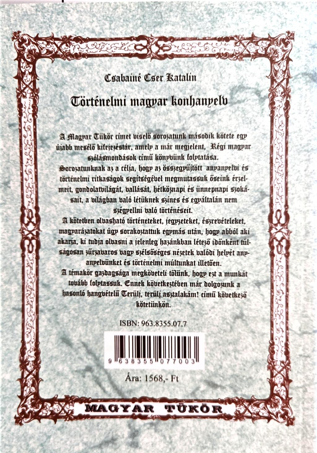 Csabainé Cser Katalin: Történelmi magyar konyhanyelv (Kultúrtörténeti "mazsolák" a magyar nyelv múltjából)