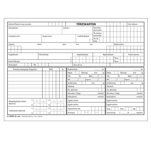 Törzskarton szabadlap A/5 fekvő