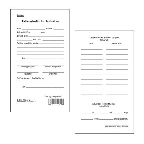 Túlóraigénylési és utasítási lap 50 lapos tömb 80x140 mm