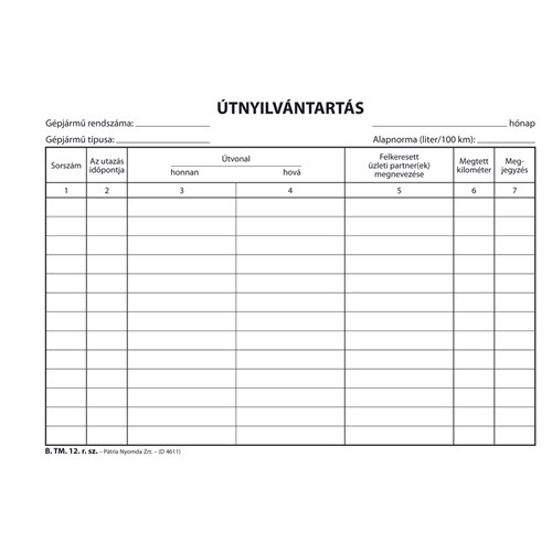 Útnyilvántartó 50 lapos tömb A/5 fekvő