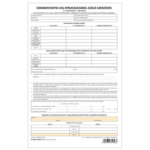 Üzembentartói jog átruházásáról szóló szerződés 4 lapos garn. A/4
