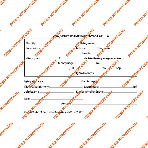 Vér, vérkészítmény igénylőlap 50x2 lapos tömb A/6
