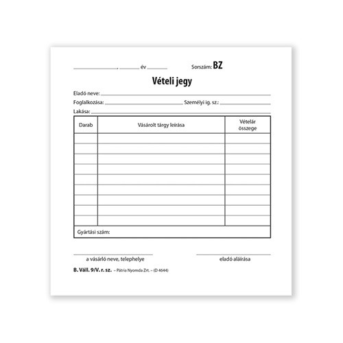 Vételi jegy 50x2 lapos tömb 140x140 mm