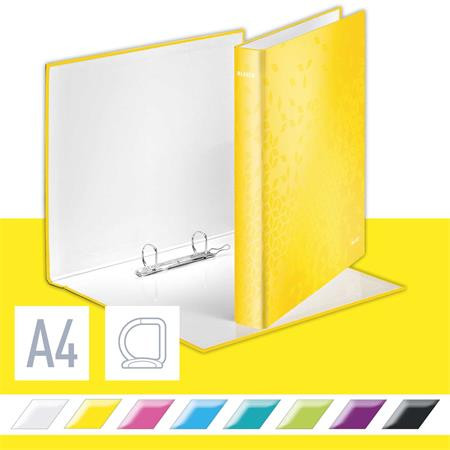 Gyűrűs könyv, 2 gyűrű, D alakú, 40 mm, A4 Maxi, karton, LEITZ "Wow", sárga