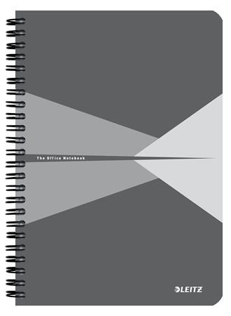 Spirálfüzet, A5, vonalas, 90 lap, PP borító, LEITZ "Office", szürke