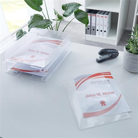 - erős, minőségi genotherm fontos dokumentumok tárolásához gyakori használatra - az erős fólia védi a dokumentumokat a sérülésektől - felül és jobb oldalon nyitott - dokumentumok magasfokú védelme az erős, 150 mikron vastag alapanyagnak köszönhetően - könnyű hozzáférés a dokumentumokhoz az előlapon található extra nagy kivágásnak köszönhetően - jól látható tartalom a víztiszta felületnek köszönhetően