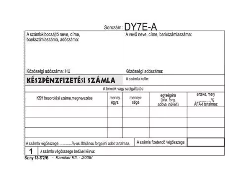 Nyomtatvány, készpénzfizetési számlatömb, egy ÁFÁs, 50x3, A6, fekvő, VICTORIA PAPER, "B.13-372", 20 tömb/csomag