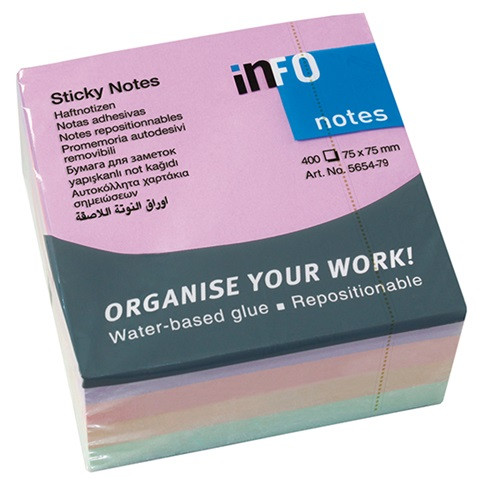 Öntapadós jegyzettömb Info Notes 75x75 mm 400 lapos pasztell vegyes színek Harmony