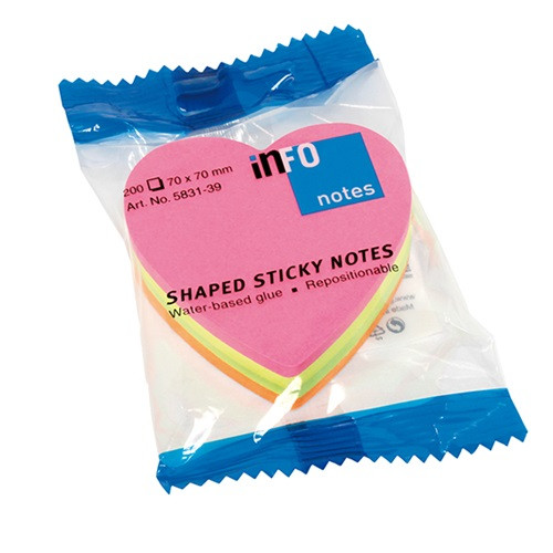 Öntapadós jegyzettömb Info Notes Cubes 70x70 mm 200 lapos neon vegyes színek szív