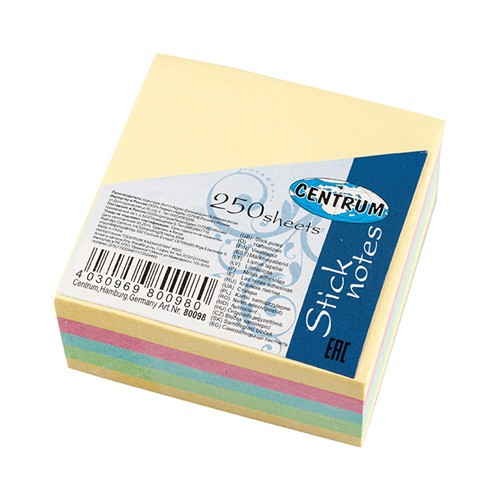 Öntapadós jegyzettömb Centrum Stick Notes 51x51 mm 250 lapos pasztell vegyes színek